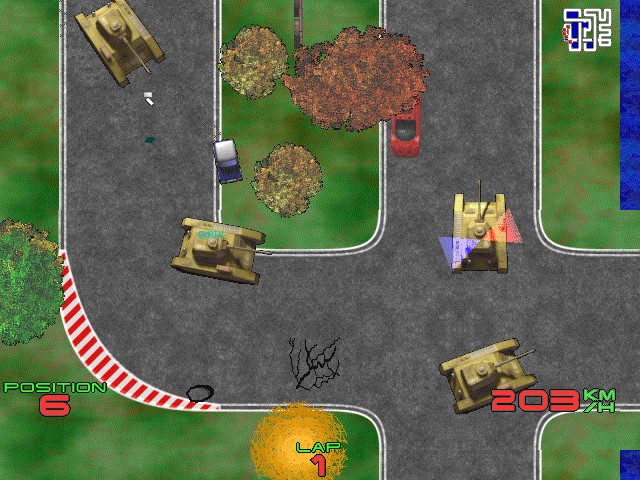 Besides the great hardware, the Acorn had a very living and kind community. That's where I came across Voti (vision of the impossible). They were a team of a few guys (mainly programmers, I guess), which had already released a space trading game like Elite. But they had no good graphicians. They wanted to make a topdown racing game and so I offered my services to them on a hobby basis. Later on a company called Pace Microdigital wanted the game to be included to their settop boxes, which had been a minor success in Britain (but not elsewhere).